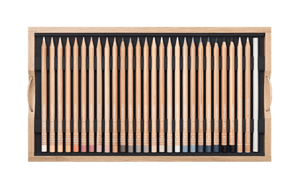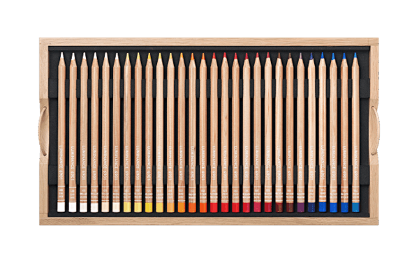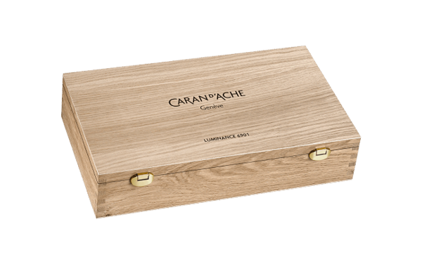 Caran d'Ache presents a light oak wooden case showcasing the Luminance 6901™ coloured pencil range, manufactured in Geneva. The case includes 100 colours, nine of which are duplicated, along with two blender pencils and one full blender, for a total of 112 pencils. With their smooth, wax-based lead, these pencils offer exceptional lightfastness that meets the ASTM D-6901 standard, ensuring durability for up to 100 years. Among the shades, 80 fall into the highest lightfastness category (LFI). A true symbol of Swiss Made excellence, this exceptional case is the perfect gift for artists and Luminance 6901™ enthusiasts.